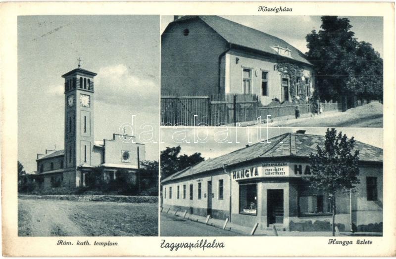 Zagyvapálfalva, Pálfalva (Nógrád); Községháza, Hangya üzlet, Római kat... https://www.darabanth.com/de/322-Fernauktion/322.0/Ansichtskarten/Ungarn~2000006/Zagyvapalfalva-Palfalva-Nograd-Kozseghaza-Hangya-uzlet-Romai-katolikus-templom~II1660912