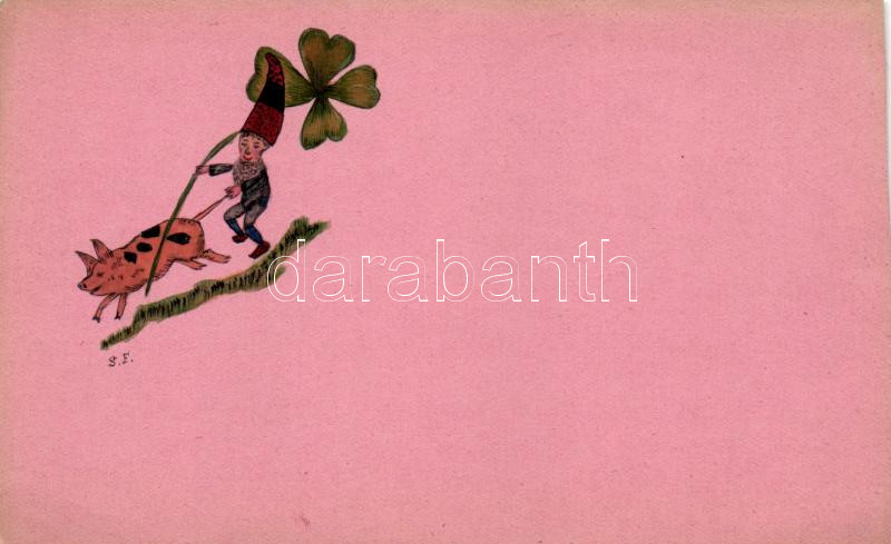 Dwarf, pig, clover, s: S.F. (vágott / cut) https://www.darabanth.com/de/322-Fernauktion/322.0/Ansichtskarten/Zwerge~2000090/Dwarf-pig-clover-s-SF-vagott-cut~II1207696
