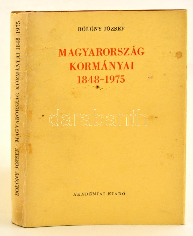 Bölöny József: Magyarország kormányai 1848-1992. Csatolva: Közös miniszterek - horvát bánok - Fiumei kormányzók 1867-1918. Magyar Országos Levéltár Kiadványai IV. Levéltártan és Történeti Forrástudományok 2. Bp., 1978, Akadémiai Kiadó. Kiadói egészvászon-kötés, kiadói papír védőborítóban, kissé foltos papírborítóval.