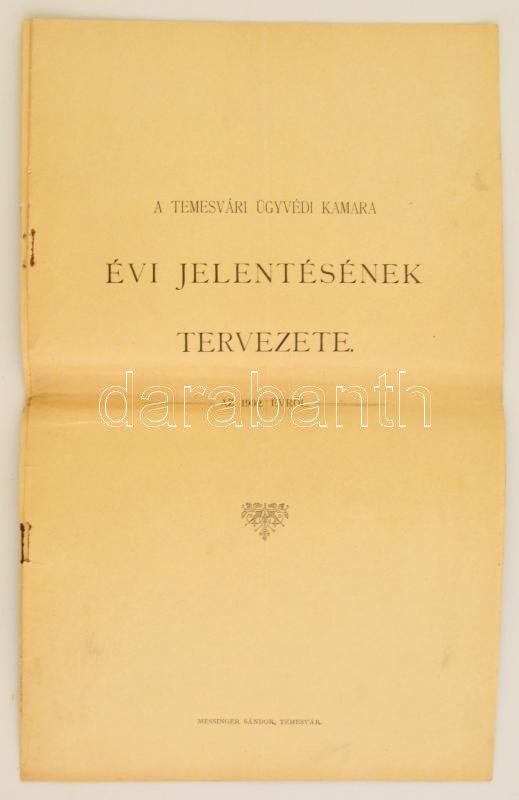 1902 A Temesvári Ügyvédi Kamara évi jelentésének tervezete. 12p. https://www.darabanth.com/de/322-Fernauktion/322.0/Bucher/Bucher-Jura~1000003/1902-A-Temesvari-Ugyvedi-Kamara-evi-jelentesenek-tervezete-12p~II1785224