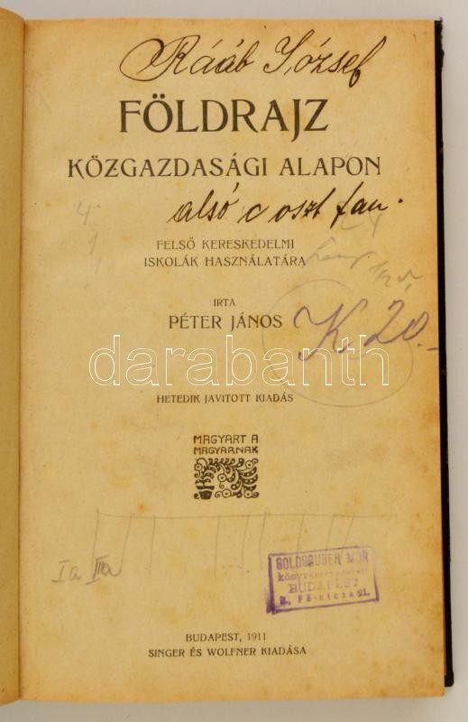 Péter János: Földrajz közgazdasági alapon. Bp., 1911. Singer és Wolfne... https://www.darabanth.com/de/322-Fernauktion/322.0/Bucher/Bucher-Naturwissenschaft-Medizin~1000009/Peter-Janos-Foldrajz-kozgazdasagi-alapon-Bp-1911-Singer-es-Wolfner-Korabeli-felvaszon-~II1782784