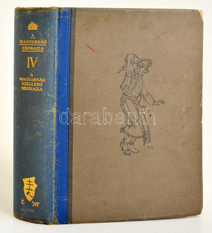 A magyarság néprajza. I-IV. kötet. Szerk.: Czakó Elemér IV. kötet: Berze-Nagy János, Kodály Zoltán, Lajtha László, Szendrey Zsigmond, Viski Károly és mások: A magyarság szellemi néprajza. Bp.,é.n., Királyi Magyar Egyetemi Nyomda. Kiadói aranyozott félbőr kötés, kis kopásokkal a gerincen