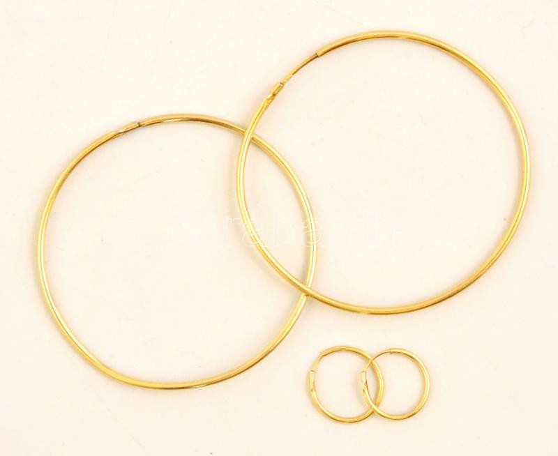 Beschreibung: Aranyozott ezüst(Ag) karikafülbevaló, 2 pár, jelzett, d: 4,5 és 1,2 cm, nettó: 2,7 g