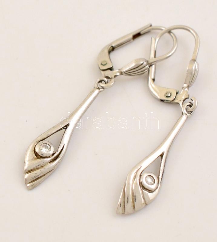 Ezüst(Ag) apró kővel díszített fülbevalópár, jelzett, 2,7×0,6 cm, nett... https://www.darabanth.com/de/322-Fernauktion/322.0/Juwelen/Juwelen~500034/EzustAg-apro-kovel-diszitett-fulbevalopar-jelzett-2-7C3970-6-cm-netto-1-8-g~II1783373