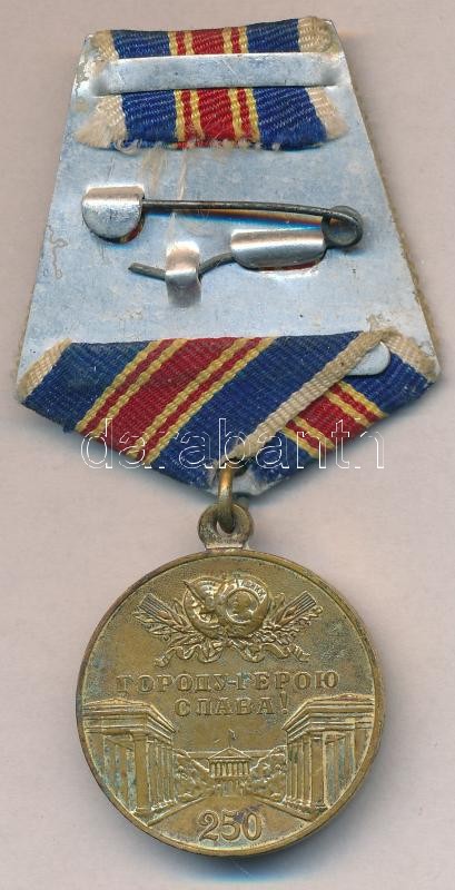 Szovjetunió 1957. "Emlékérem Leningrád alapításának 250. évfordulójára" aranyozott fém kitüntetés mellszalagon (32mm) T:2 Soviet Union 1957. "In Commemoration of the 250th Anniversary of Leningrad" gold plated metal decoration with ribbon (32mm) C:XF