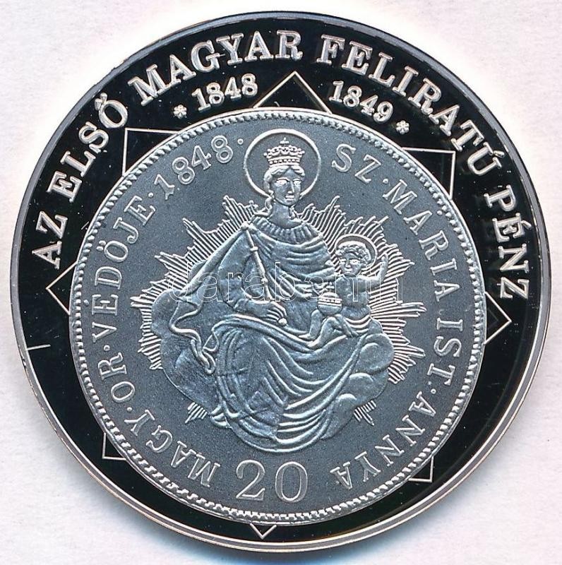 Beschreibung: DN "A magyar nemzet pénzérméi - Az első magyar feliratú pénz 1848-1849" Ag emlékérem tanúsítvánnyal (10,3g/0.999/35mm) T:PP