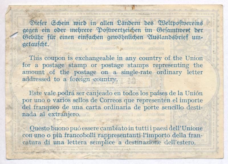 DN 64f "Nemzetközi válaszdíjszelvény" pecsét nélkül T:III ly... https://www.darabanth.com/de/322-Fernauktion/322.0/Numismatik/Notgeld-aus-Papier-und-Metall~2500006/DN-64f-Nemzetkozi-valaszdijszelveny-pecset-nelkul-TIII-ly--Hungary-ND-64-Filler-Interna~II1749677