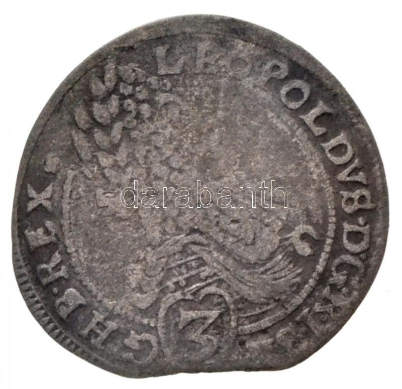 Hun... https://www.darabanth.com/de/322-Fernauktion/322.0/Numismatik/Ungarische-Munzen-und-Munzen-mit-ungarischem-Munzzeichen~2500008/1696C-H-3kr-Ag-I-Lipot-Pozsony-1-55g-T2-lapkaveg-Hungary-1696C-H-3-Kreuzer-Ag-Leopold-I-~II1773893