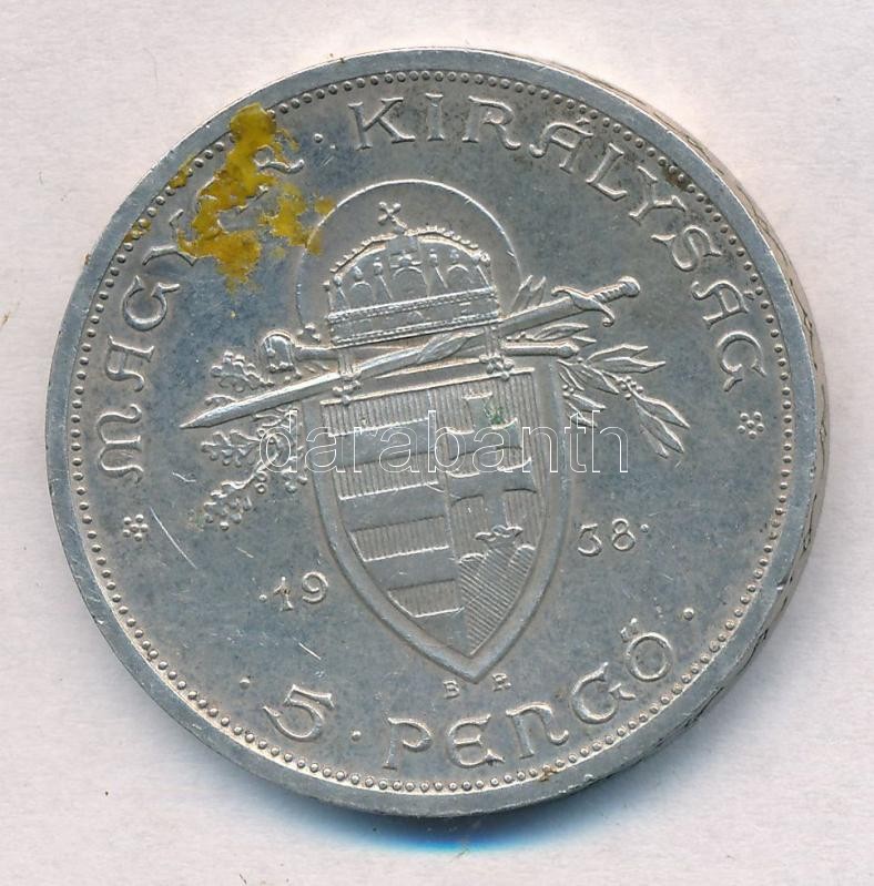 Beschreibung: 1938. 5P Ag "Szent István" T:2 fo.
