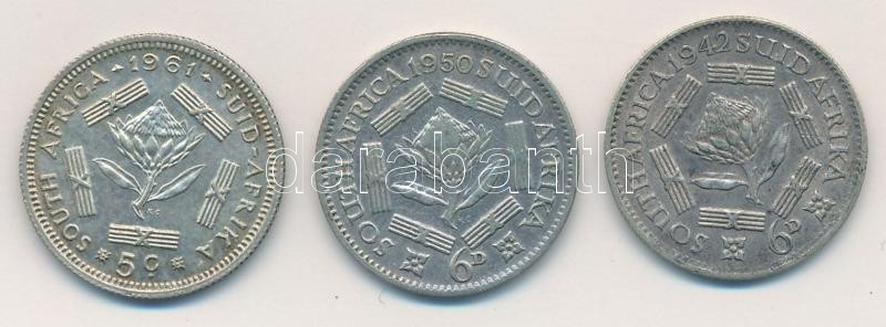 Dél-Afrika 1942-1961. 6p Ag (3xklf) T:2,2- patina