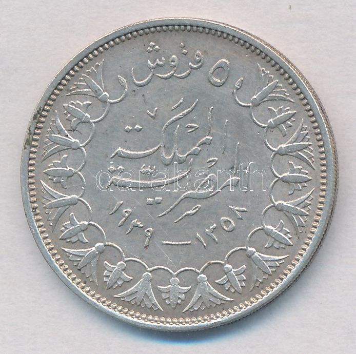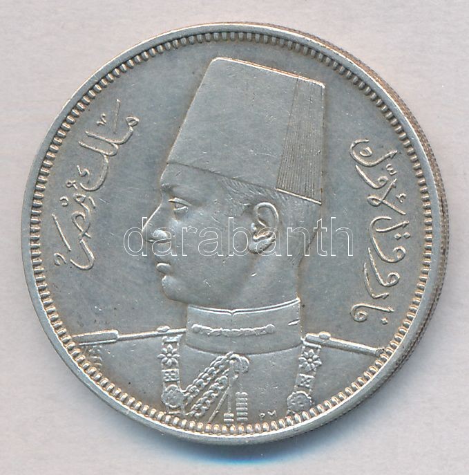 Egypt 1939. 5 Piastres Ag C:AU https://www.darabanth.com/de/322-Fernauktion/322.0/Numismatik/Weltweit-Munzen~2500013/Egyiptom-1939-5p-Ag-T1--Egypt-1939-5-Piastres-Ag-CAU~II1783332