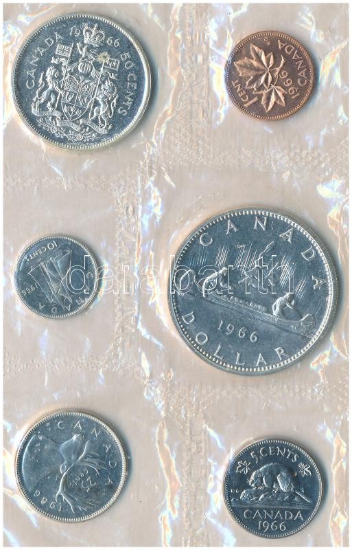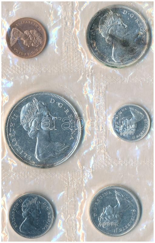 Kanada 1966. 1c Br + 5c Ni + 10c Ag + 25c Ag + 50c Ag + 1$ Ag forgalmi sor fóliatokban T:1- patina Canada 1966. 1 Cent Br + 5 Cents Ni + 10 Cents Ag + 25 Cents Ag + 50 Cents Ag + 1 Dollar Ag coin set in foil packing C:AU patina