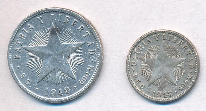 Kuba 1948. 10c Ag + 1949. 20c Ag T:2 Cuba 1948. 10 Centavos Ag + 1949. 20 Centavos Ag C:XF Krause KM#A12, KM#13.2