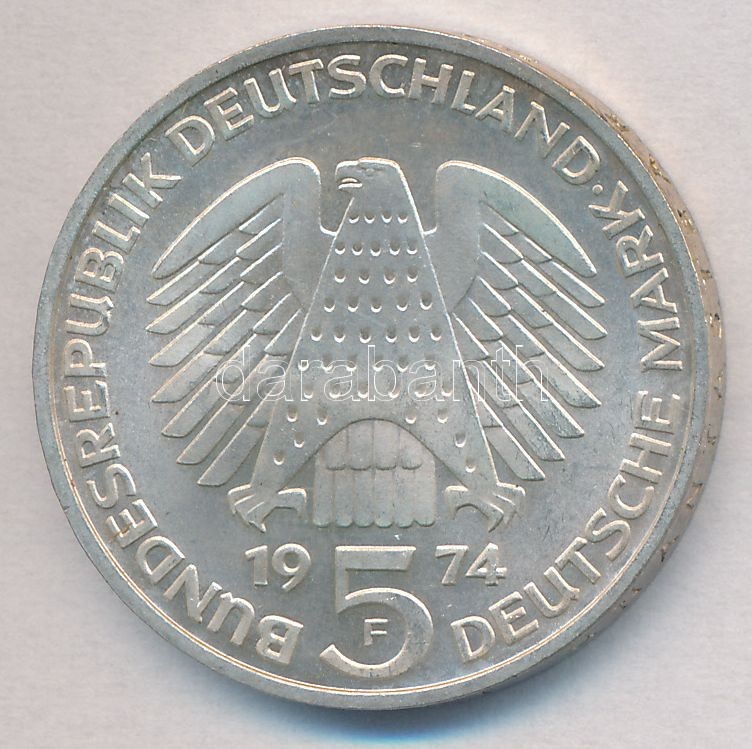 FRG 1974F 5 M... https://www.darabanth.com/de/322-Fernauktion/322.0/Numismatik/Weltweit-Munzen~2500013/NSZK-1974F-5M-Ag-25-eves-az-Alkotmany-T1---FRG-1974F-5-Mark-Ag-25th-Anniversary--Constitutio~II1765456