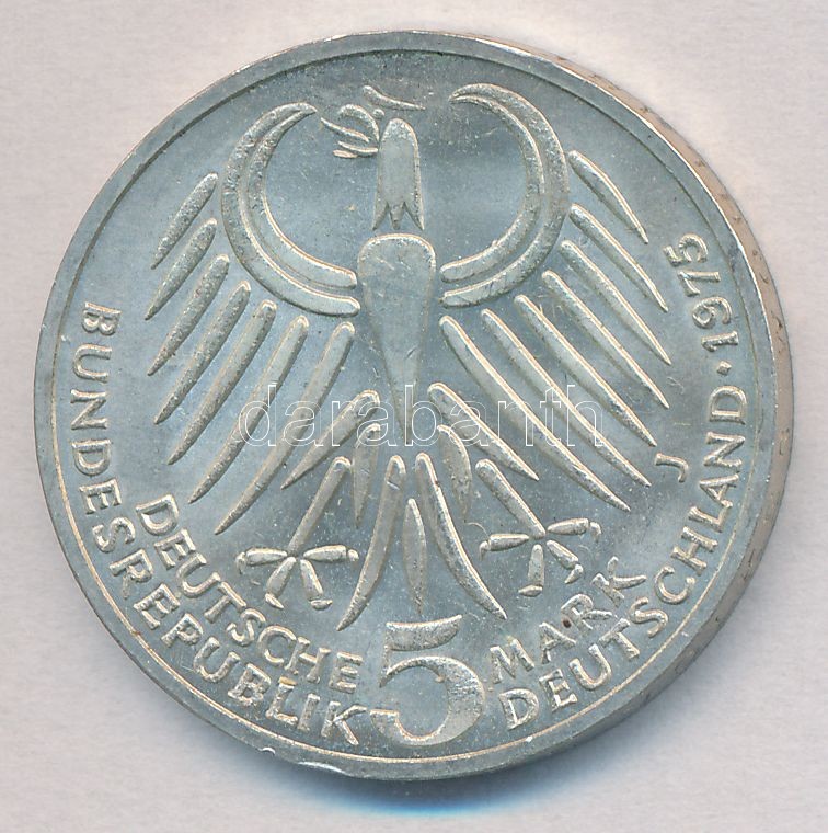 NSZK 1975J 5M Ag "Friedrich Ebert" T:1- FRG 1975J 5 Mark Ag "Friedrich Ebert" C:AU Krause KM#141