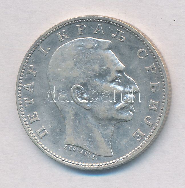 Serbia 1904. 1 Dinar Ag... https://www.darabanth.com/de/322-Fernauktion/322.0/Numismatik/Weltweit-Munzen~2500013/Szerbia-1904-1D-Ag-I-Peter-T2--Serbia-1904-1-Dinar-Ag-Petar-I-CVF~II1782792