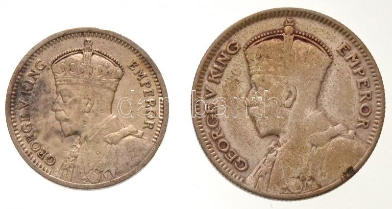 Új-Zéland 1933. 6p Ag + 1934. 3p Ag "V. György" T:2,2- New Zealand 1933. 6 Pence Ag + 1934. 3 Pence Ag "George V" C:XF,VF
