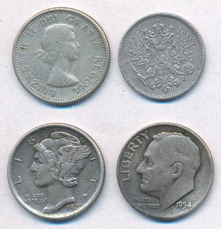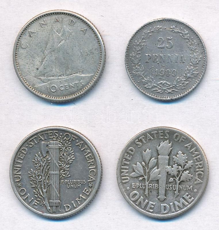 Vegyes 4db-os kisezüst tétel, közte Amerikai Egyesült Államok, Finnország, Kanada T:2,2-