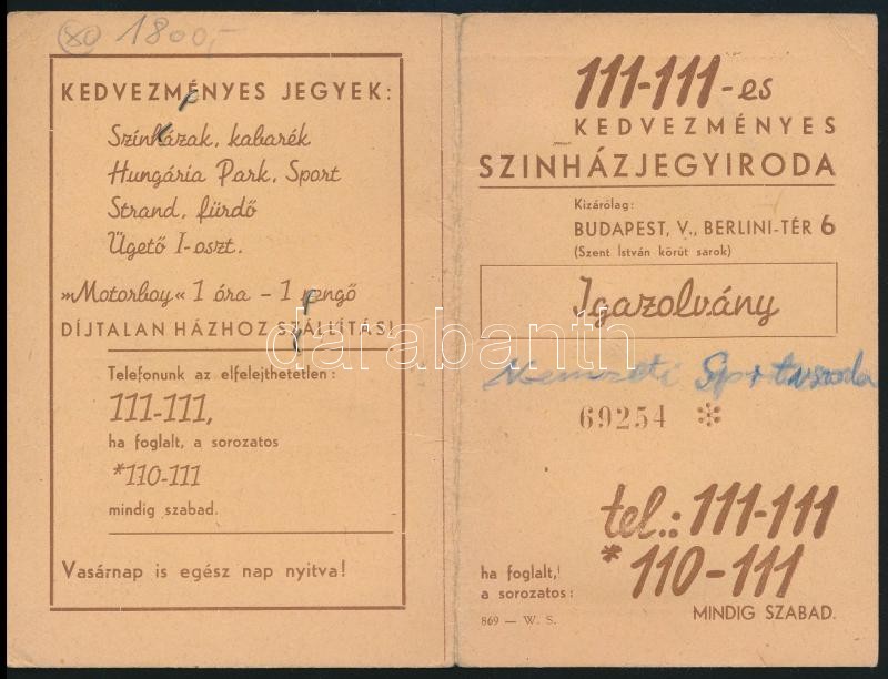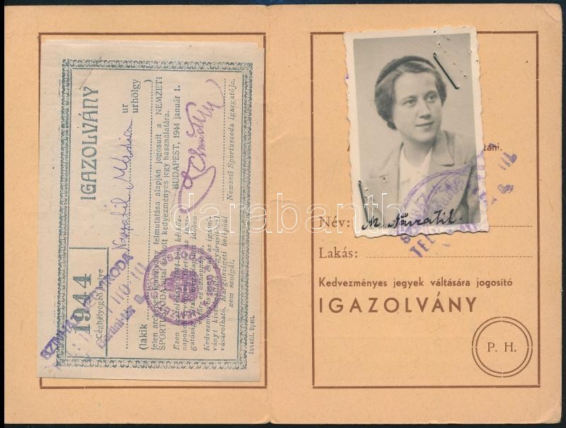 1944 Bp., Kedvezményes Színázjegyiroda fényképes igazolványa a Nemzeti... https://www.darabanth.com/de/323-Fernauktion/323.0/Andere-Sammelgebiete/Dokument~500016/1944-Bp-Kedvezmenyes-Szinazjegyiroda-fenykepes-igazolvanya-a-Nemzeti-Sportuszodaba~II1795334