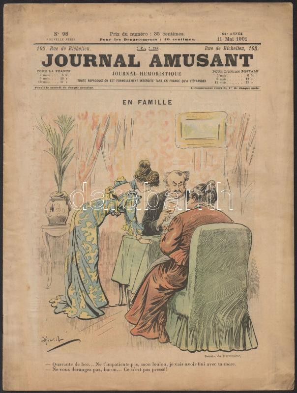 1901 Journal Amusant, journal humoristique Nr. 98 - francia nyelvű vic... https://www.darabanth.com/de/323-Fernauktion/323.0/Andere-Sammelgebiete/Drucksachen~500028/1901-Journal-Amusant-journal-humoristique-Nr-98-francia-nyelvu-vicclap-illusztraciokkal-16p~II1795536