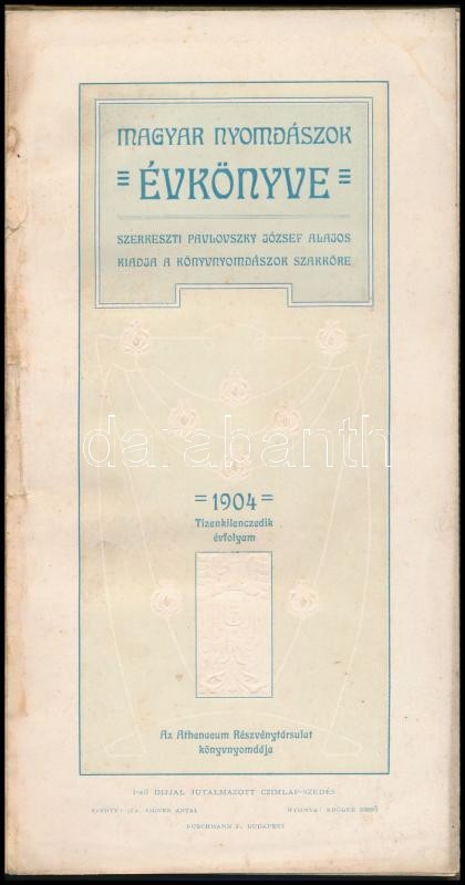 1904 Magyar nyomdászok évkönyve, szerk. Pavlovszky József Alajos, rekl... https://www.darabanth.com/de/323-Fernauktion/323.0/Andere-Sammelgebiete/Drucksachen~500028/1904-Magyar-nyomdaszok-evkonyve-szerk-Pavlovszky-Jozsef-Alajos-reklamokkal-hasznos-tanulma~II1795646