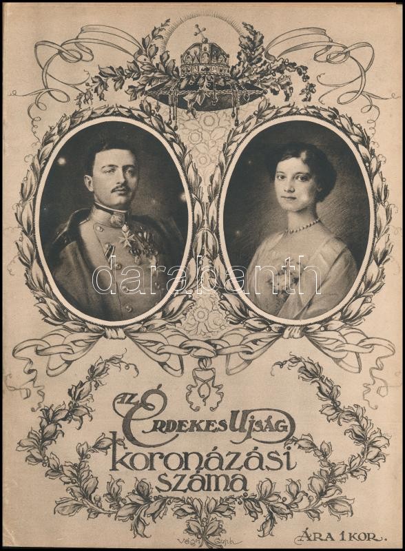 1916 Az Érdekes Újság koronázási száma. A borító Végh Gusztáv grafikus munkája. Bp., Légrády-ny., 80 p. Rengeteg képpel illusztrálva. Papírkötésben, a kötése szétvált, de egyébként jó állapotban.