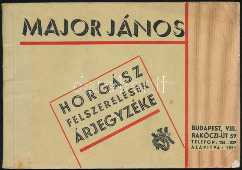 1938 Major János Horgász felszerelések árjegyzéke, gazdag szövegközti ... https://www.darabanth.com/de/323-Fernauktion/323.0/Andere-Sammelgebiete/Drucksachen~500028/1938-Major-Janos-Horgasz-felszerelesek-arjegyzeke-gazdag-szovegkozti-illusztraciokkal~II1790427
