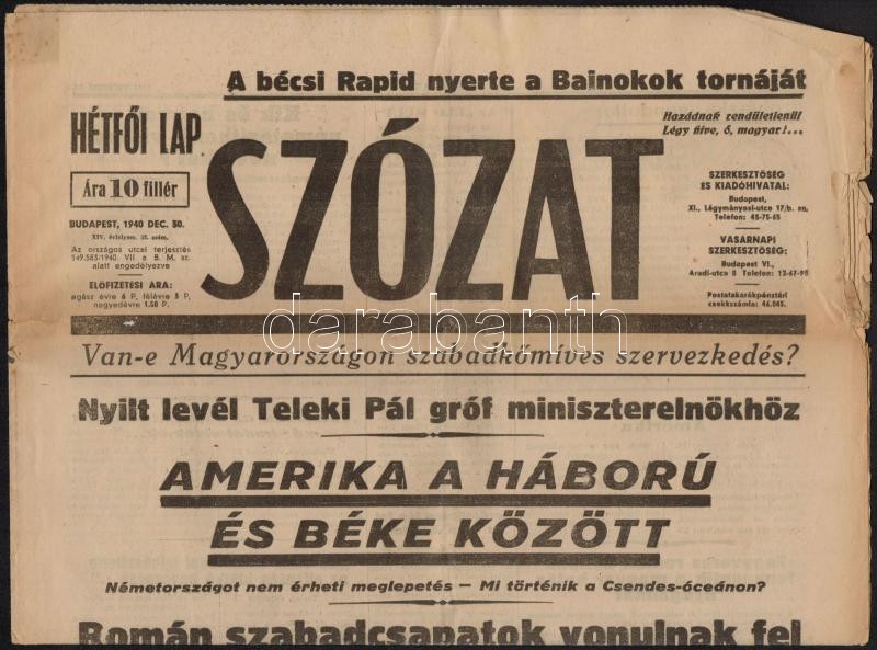 1940 Bp., Szózat, szerk.: Meskó Zoltán, Globus-ny., benne az FTC-Rapid... https://www.darabanth.com/de/323-Fernauktion/323.0/Andere-Sammelgebiete/Drucksachen~500028/1940-Bp-Szozat-szerk-Mesko-Zoltan-Globus-ny-benne-az-FTC-Rapid-Bukarest-kozep-europa~II1795787