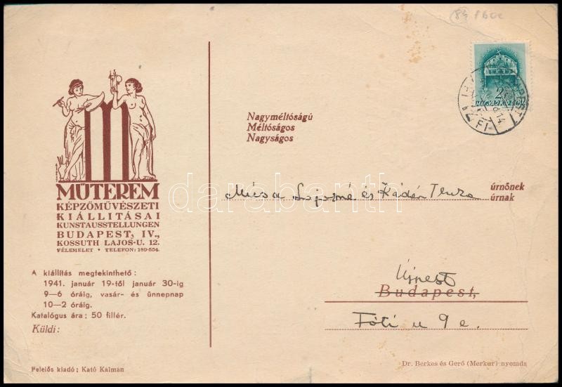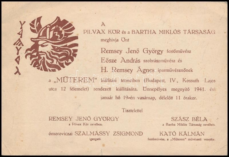 1941 Bp., A Pilvax Kör és a Bartha Miklós Társaság meghívója kiállítás... https://www.darabanth.com/de/323-Fernauktion/323.0/Andere-Sammelgebiete/Drucksachen~500028/1941-Bp-A-Pilvax-Kor-es-a-Bartha-Miklos-Tarsasag-meghivoja-kiallitasra~II1795356