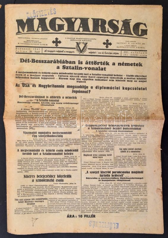 cca 1940-1941 a Magyarság nemzetiszocialista napilap 20 lapszáma, aktu... https://www.darabanth.com/de/323-Fernauktion/323.0/Andere-Sammelgebiete/Drucksachen~500028/cca-1940-1941-a-Magyarsag-nemzetiszocialista-napilap-20-lapszama-aktualis-hirekkel~II1793008