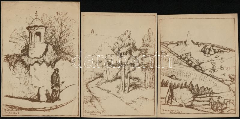 Beschreibung: Nikelszky Géza (1877-1966): Pécs ( 3db). Klisé, papír, jelzett a klisén, 14×10 (3×) cm