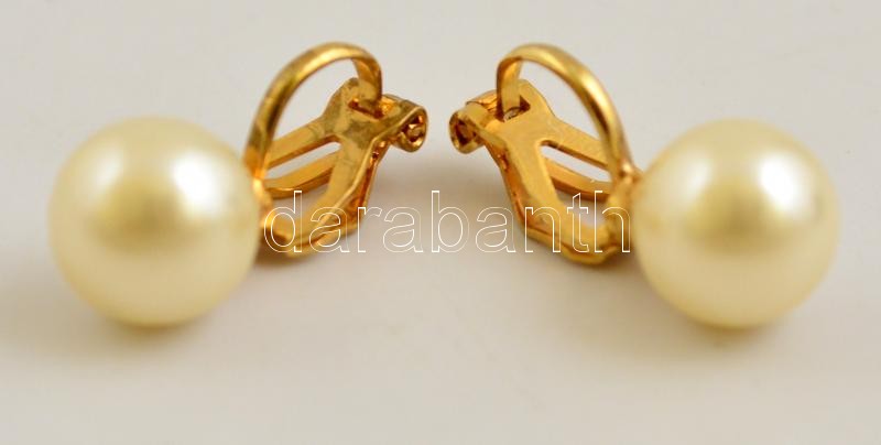 Beschreibung: Gyönggyel díszített fülbevaló aranyszínű foglalattal