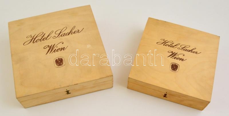 Hotel Sacher Wien fa dobozok, 2 db, 22×22×6,5; 18,5×18,5×5,5 cm https://www.darabanth.com/de/323-Fernauktion/323.0/Andere-Sammelgebiete/Flohmarkt~500011/Hotel-Sacher-Wien-fa-dobozok-2-db-22C39722C3976-5-18-5C39718-5C3975-5-cm~II1791238