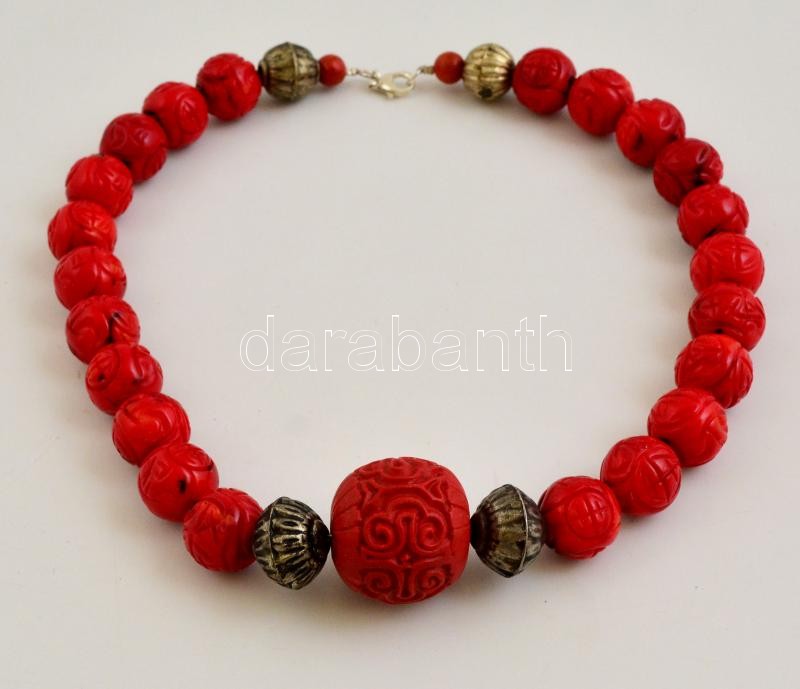 Korall nyaklánc, faragott gömb elemekkel, ezüst szerelékkel, h: 42 cm https://www.darabanth.com/de/323-Fernauktion/323.0/Andere-Sammelgebiete/Flohmarkt~500011/Korall-nyaklanc-faragott-gomb-elemekkel-ezust-szerelekkel-h-42-cm~II1792049