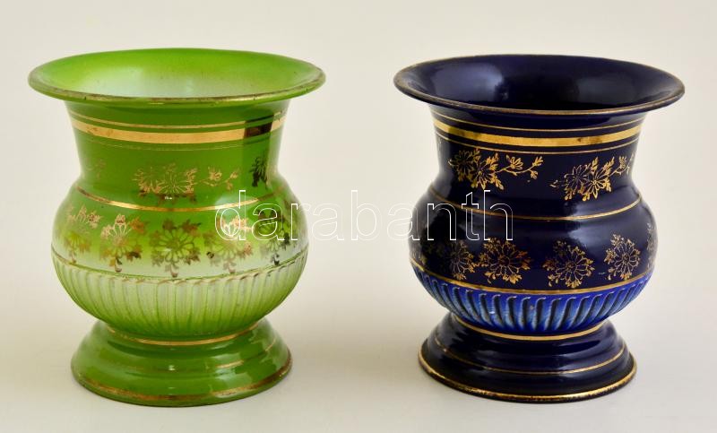 Beschreibung: Lampart zománcozott fém váza, 2 db, m: 10,5 cm, d: 10 cm