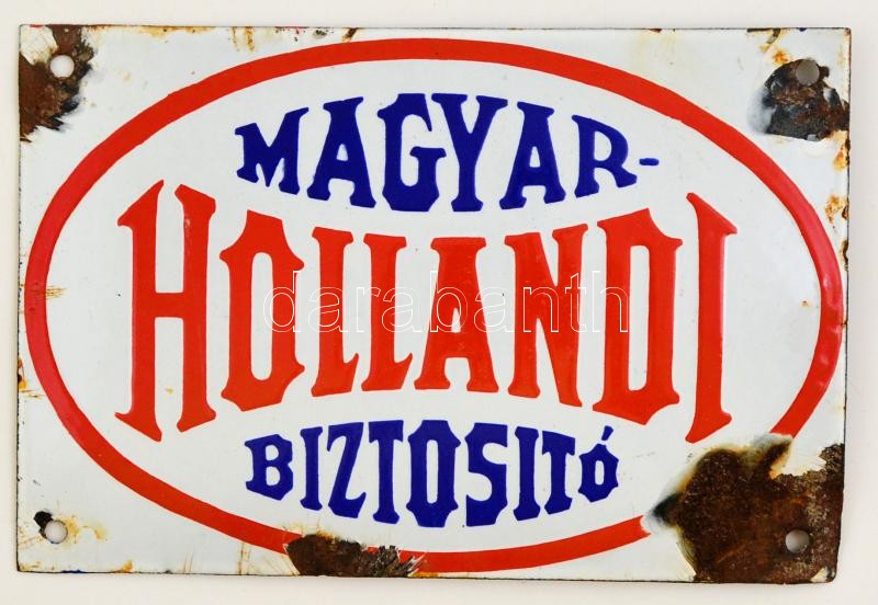 Magyar-Hollandi Biztosító, zománcozott fémtábla, sérült, 12×18 cm https://www.darabanth.com/de/323-Fernauktion/323.0/Andere-Sammelgebiete/Flohmarkt~500011/Magyar-Hollandi-Biztosito-zomancozott-femtabla-serult-12C39718-cm~II1792239