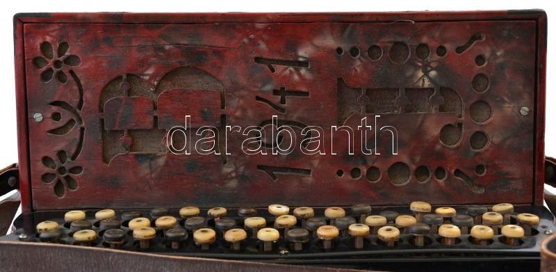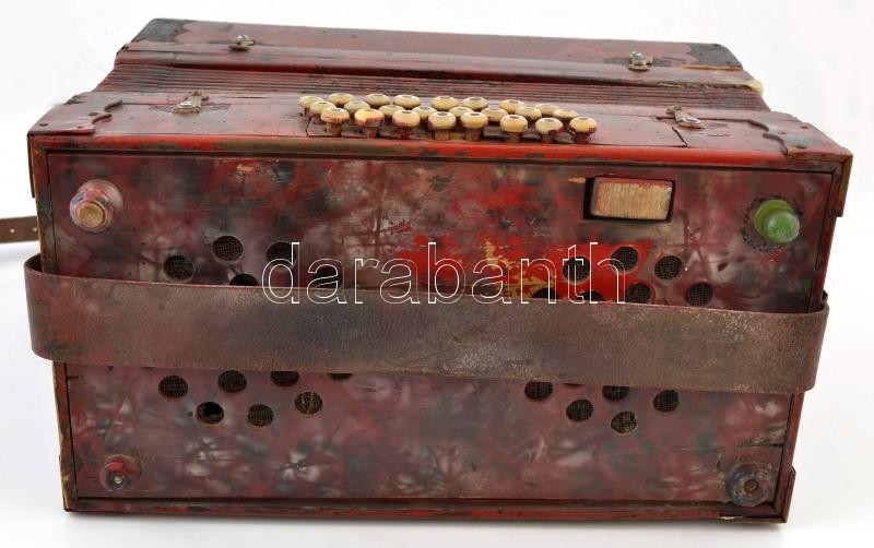 Beschreibung: Régi tangóharmonika, B. J. 1941 jelzéssel, működik, kopottas