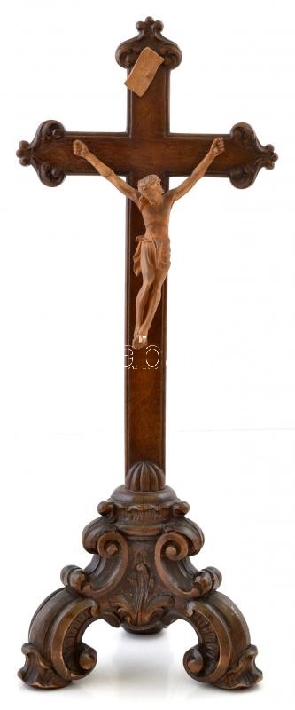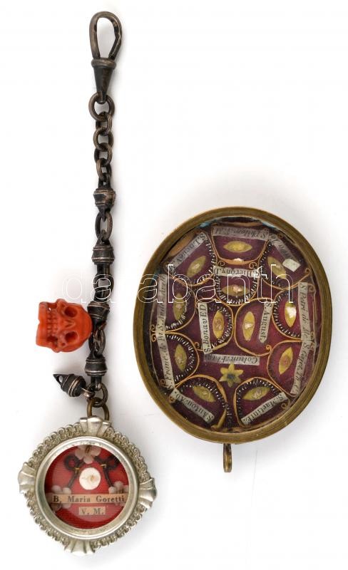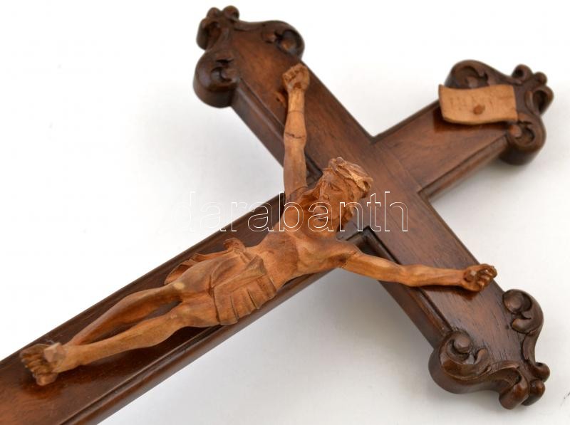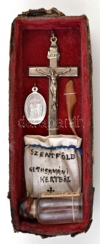 Beschreibung: Vegyes kegytárgy tétel papi hagyatékból: gyertya, sorszámozott fajansz szenteltvíztartó, rózsafüzér, stb., kereszt faragott fa korpusszal, Herendi Jézus, 12 db
