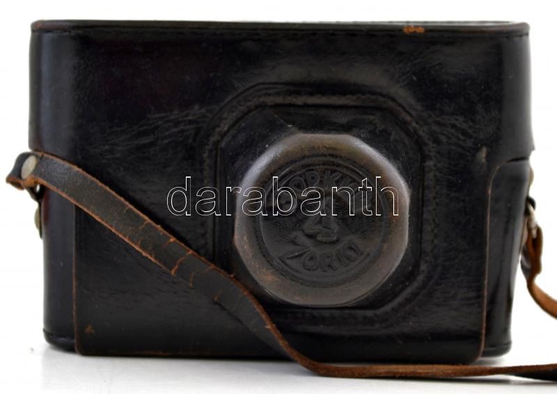 Zorkij-4 távmérős fényképezőgép, Jupiter-8 2/50 mm objektívvel, eredeti bőr tokjában, jó állapotban / Vintage Russian rangefinder camera, with original leather case, in good condition