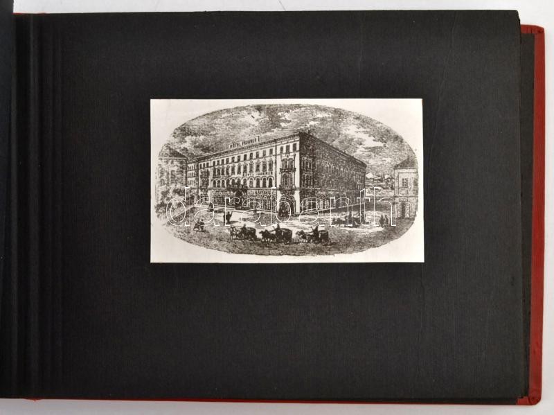 Beschreibung: Budapestről készült festmények, rajzok, metszetek fotómásolatai 2 db albumba ragasztva, 78 db, 8×10,5 cm