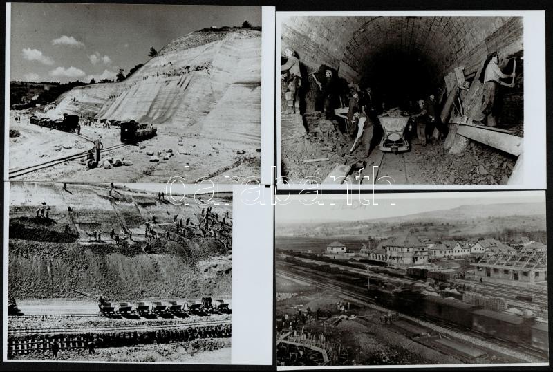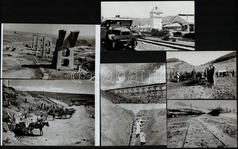 Beschreibung: Déda - Szeretfalva vasútvonal építése, 27 db sajtófotó és modern nagyítás, 8,5×12,5 és 12×18 cm közötti méretekben