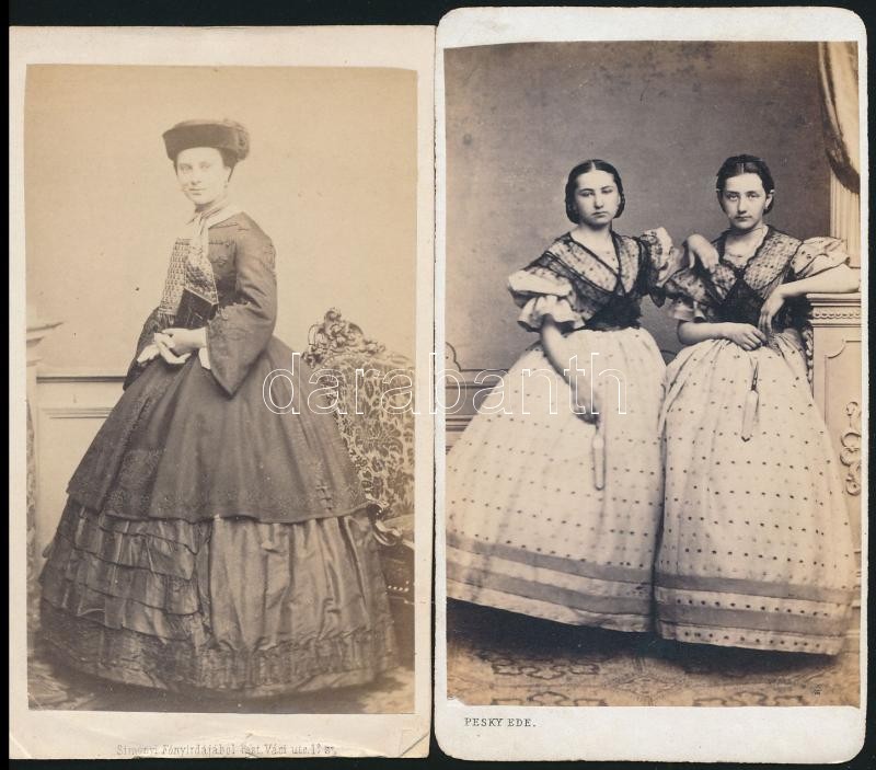 cca 1860 Női divat, 2 db vizitkártya méretű fénykép jelzett műtermekbő... https://www.darabanth.com/de/323-Fernauktion/323.0/Andere-Sammelgebiete/Foto~500019/cca-1860-Noi-divat-2-db-vizitkartya-meretu-fenykep-jelzett-mutermekbol-10-5x6-cm~II1788864