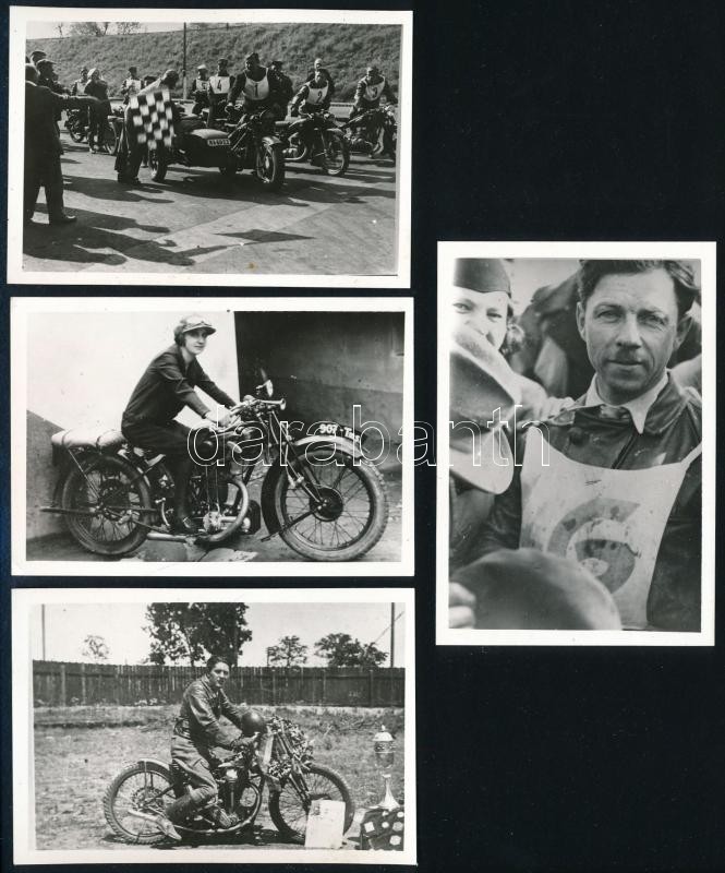 cca 1927-1950 Motorversenyzők, motorversenyek (Filatorigát, temesvári verseny), Kesjár János, Buzzi Árpád, 4 db utólagos előhívás, feliratozva, 6,5×9,5 cm
