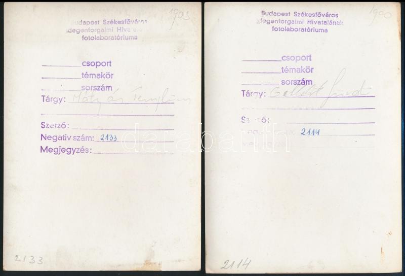 Beschreibung: cca 1930 Budapest, 3 db fotó a Budapest Székesfőváros Idegenforgalmi Hivatala fotólaboratóriumából, hátuljukon pecséttel jelzett, 18×13 cm