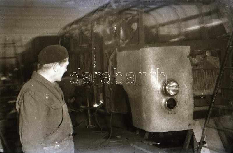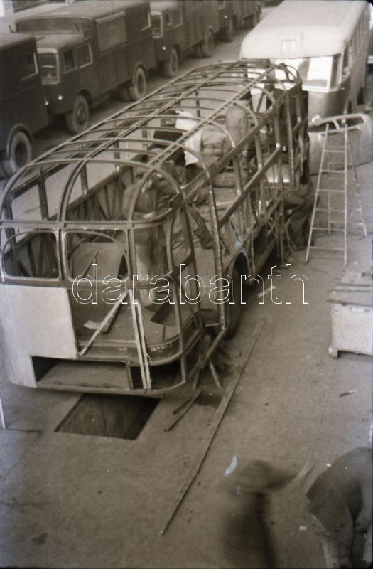 cca 1949 Budapest, autóbusz (vagy troli?) a gyártósoron, Rózsa György (?-?) budapesti fotóriporter hagyatékából 15 db szabadon felhasználható vintage negatív, 24x36 mm