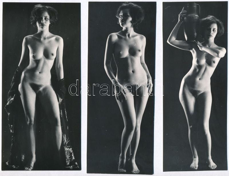 Beschreibung: cca 1974 Házasságkötőből a műterembe, szolidan erotikus felvételek, 7 db vintage fotó, 18x6 cm