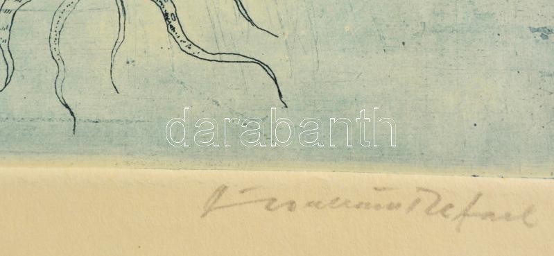 Beschreibung: Ábrahám Rafael (1929-2014): Mikrovilág, színes rézkarc, papír, jelzett, 22×16,5 cm
