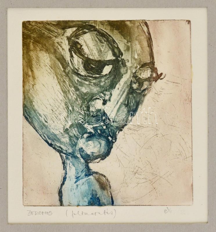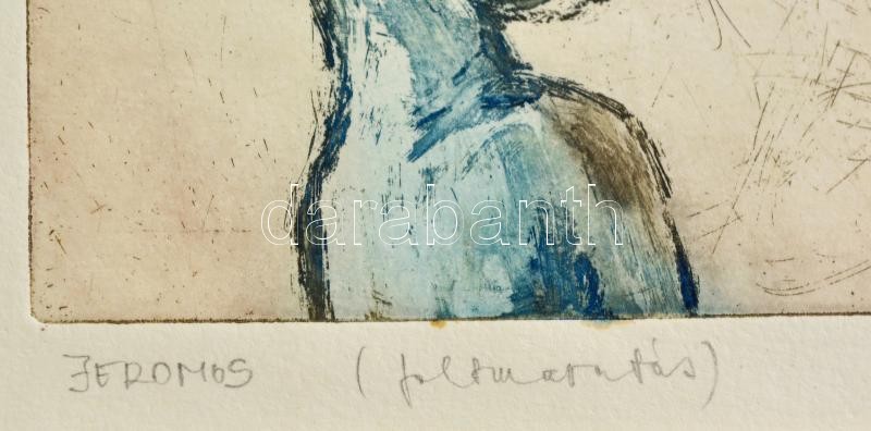 Beschreibung: Jelzés nélkül: Jeromos. Színes rézkarc, papír, 12×11 cm