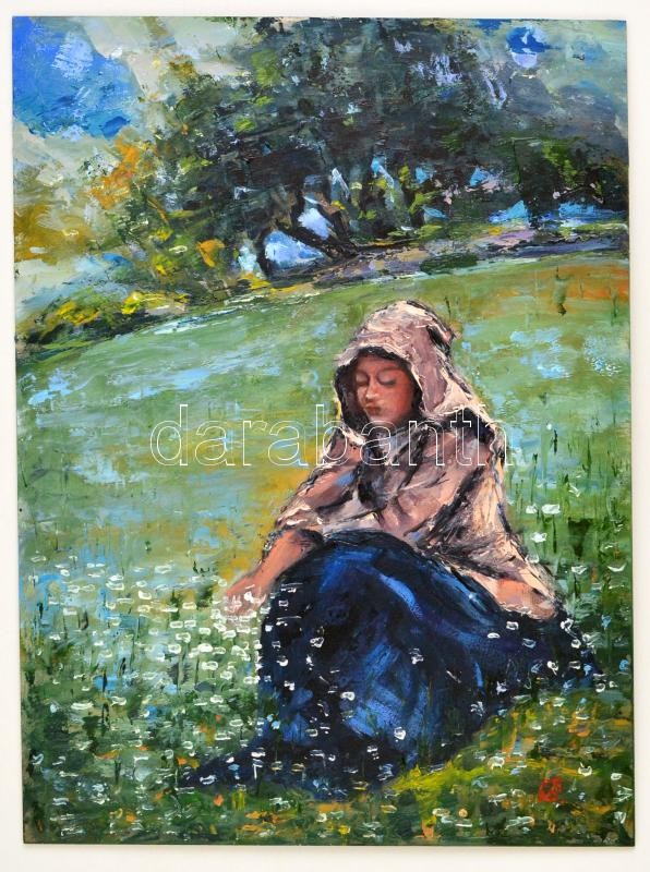 Olvashatatlan jelzéssel: Lány a réten. Olaj, farost, 40×30 cm https://www.darabanth.com/de/323-Fernauktion/323.0/Andere-Sammelgebiete/Gemalde-und-Grafiken~500001/Olvashatatlan-jelzessel-Lany-a-reten-Olaj-farost-40C39730-cm~II1790915