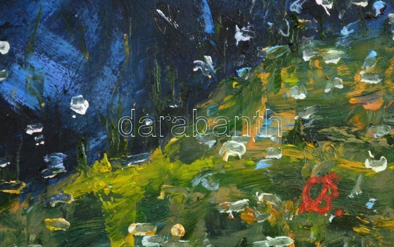 Beschreibung: Olvashatatlan jelzéssel: Lány a réten. Olaj, farost, 40×30 cm